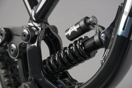 A gestire i colpi più duri al posteriore c'è la molla Marzocchi Bomber CR. Abbastanza sensibile da gestire le vibrazioni e pronta a gestire anche i salti ad alta velocità o le forature.