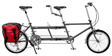 KHS Sausage T20 è probablimente l'unico tandem pieghevole (non smontabile) al mondo. Il telaio è in pregiata lega di acciaio CrMo Reynolds 520 , materiale che conferisce la elasticità ideale per questo mezzo particolare. La trasmissione a 27 velocità è frutto di un sapiente mix di componenti Shimano e Sram che rendono KHS Sausage capace di affrontare qualsiasi tipo di persorso, sia che salga sia che scenda. La perfetta posizione di guida che si riesce ad ottenere grazie alla miriade di regolazoni , ne fa un mezzo ottimo per il Gran Turismo . Il tandem è già equipaggiato con una borsa posteriore di generose dimensioni, ma i portapacchi di serie possono essere utilizzati per accrescere il numero di sacche, ideale per chi fa lunghi viaggi.